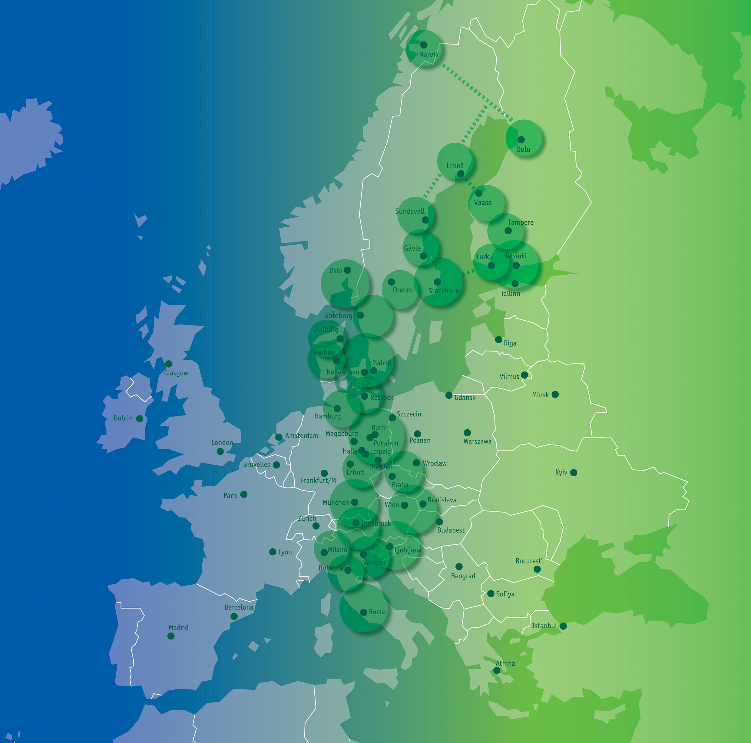 The members of the Scandria®Alliance represent cities and regions along the Scandria®Corridor with more than 20 million inhabitants from Finland, Sweden, Norway, Germany and Italy.